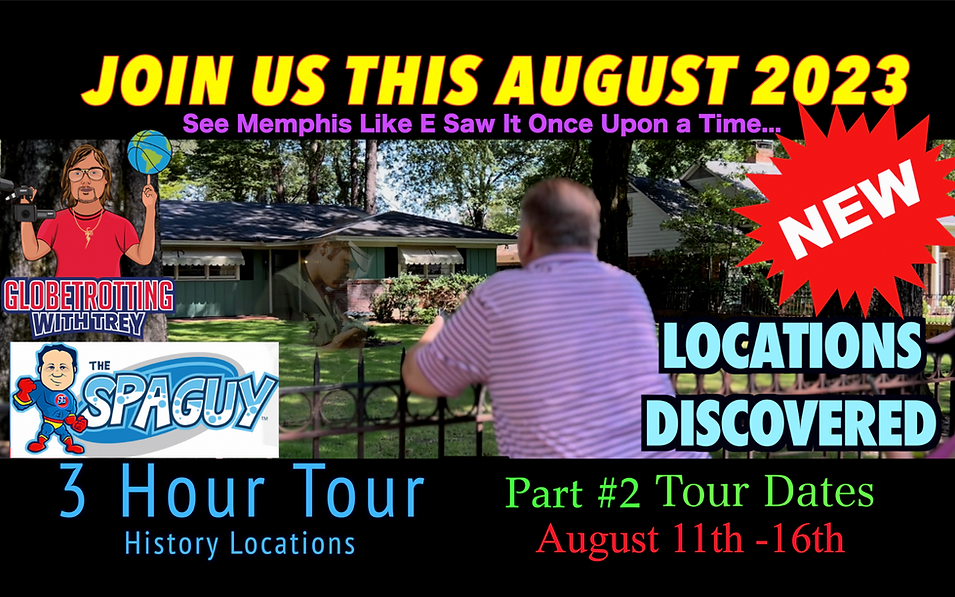 Billy Stallings "Spa Guy" & Trey Miller "Globetrotting with Trey are Youtubers that travel around the world bringing Elvis History to fans each week. With over 120,000 Subscribers between the two, Elvis fans will visit locations and meet people who were a part of Elvis Presley's Life by tuning in each week to Spa Guy & Globetrotting with Trey on Youtube. The most important aspect of their channels is they work to uncover truths & less known facts about Elvis so fans can Learn about the Real man...